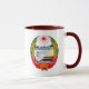 Emblemen följer de grundläggande designanvisningarna av emblemen av sovjet - union som adopteras i många andra länder inklusive Nordkorea, som indikerar klart förbindelsen mellan den kommunistiska ideologin och fundamentet av landet på början av kalla kriget.
