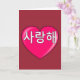 "사랑해" - "Jag älskar dig" på koreanska. Ge denna underbara gåva på Alla hjärtans dag eller när du vill uttrycka din kärlek. Röd hjärtbakgrund.