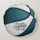 Den här basketkudden för flickor eller pojkar har en basket med omväxlande teal- och vita färgade paneler - anpassa med spelare namn i ett "autograph" stil som ligger ovanför idrottsmannens jersey-nummer - av katz_d_zynes