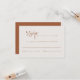 Detta svarsbrev för bröllop har en kantig handskriven typsnitt och modern minimalistisk design. Dess bohemiska jordtonade brända orange och beige färgschema gör det till det perfekta svarsbrevet för din samtida eller industriella bröllopsuppslag. *De flesta* formuleringar är redigerbara och detta svarsbrev kan användas för alla tillfällen. Använd enkelt för din brudshow, baby shower, pensionsfest, etc.