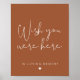 Denna "vi önskar att du var här" I kärlekens minne skylt har en djärv handskriven teckensnitt och modern minimalistisk design med en bohemisk bränd orange bakgrundsfärg. Ändra enkelt färgerna och redigera *de flesta* formuleringar för att möta dina behov för tillfället. Denna skylt är perfekt för ditt minimalistiska, boho eller moderna bröllop eller evenemang.