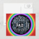 Kornbågsfred på flera språk. Vykort med kromfred på många-språk. Detta är en fredsutformning på många-språk som jag nyligen uppdaterade från ett original som jag skapade för ungefär 25 år sedan. Det blev berömd på knappmärken, vykort och skjortor. Originalet skapades i Letraset - om någon minns det? Finns nu igen i en mängd olika bilder av stilar under 2000-talet!! Inklusive denna coola-kromeffekt. Såväl utbildning som praktisk, och en slående utformning! Vad är det som inte gillar? :