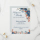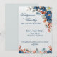 Denna underbara anpassade design har blå och kopparfärgade blommor på en ljusblå bakgrund. Bröllops kallelse och koordinerande inbjudan och tack-kort.