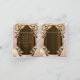 En drömdesign som catcher med guld och bruna beslag och som innehåller en rund bambocirkelformad webben med bruna tonfjädrar och röd pärlor på en mjuk fjäderbakgrund för bröllop.