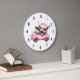 En klocka med vismisk illustration. En rosa som kör runt i en rosa som kan konverteras. Det är bra.