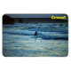 En surfer härjar i en atlantisk våg i skymningen på norra Cornwall kusten, England, Förenade kungariket.
