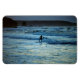 En surfer härjar i en atlantisk våg i skymningen på norra Cornwall kusten, England, Förenade kungariket.