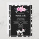 Blommiga korprintade bebisfestinkvationer med rosa och svarta accenter och en komönsterbakgrund. Söt grafik av en kalv som bär en rosa rosett.