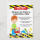 Starta din firande från högerna med den här rättfärdiga korrigeringen inbjudan. Perfekt för den där lilla Birthday Boy! Den har en gult och en svart diagonal strimlad gräns överst och grund. Det finns ett rött tecken som lyder "Vi kan laga det". Det finns en pojke med rött hår som håller en röd verktygslåda. Det finns verktyg som :drill, såg, tänger, skruvmejsel och en bult längs grund i inbjudan. Ta en titt på de många andra mönstren på den här raden. ©babystar