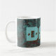 Mugg med coola korroderad metall-effekt tryckt struktur i gröntens nyans och brunt. Ett anpassade som du kan anpassa med egen text, bilder och egna idéer. Observera att det här är en tryckt digitalbild som inte skiner eller innehåller äkta metall.