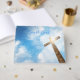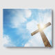 Religiös temabok är lämplig för en mängd olika tillfällen. Kristet kors i en blå himmel med solljus och vita moln.