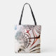 Korsade linjer i varierande färger på ljus bakgrun tygkasse