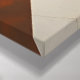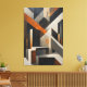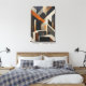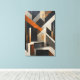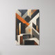 Geometrisk abstrakt konst med former som liknar trappor och arkitektoniska block. Nyanser av svart, vitt och roströd orange. Sofistikerad målad textur. Perfekt för modern dekoration och kontor. Strukturell design som spelar med perspektiv och djup i en elegant och samtida komposition.