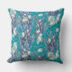 Dekorativ kudde med botaniskt blommönster, framställt från livsskisser från hand plockade. Vackert vår blommor - vita krukor på turkobakgrunden, vita fläckar runt dem. © Clipso-Callipso / Julia Khoroshikh