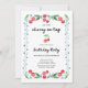Den här färglösa födelsedagsfest inbjudan har en vit, mormenial stil-röd körsbärsdesign med vattenfärgen blå ram och blommor och söta gröntar. Elegantens vintage skriver att hon är "körsbäret på toppen". Den här återdesignen för chic och snyggt är perfekt för någons födelsedag, inklusive tonåringar, barn och vuxnor!