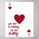 Ge din yta en lekfull romantisk gnista med detta söta hjärter ess väggkonsttryck med den söta frasen "du är en körsbär på toppen baby". Designad med en djärv röd-vit palett, blandar detta konstverk en minimalistisk spelkortdesign med uttrycksfull handritad typografi för ett utseende som känns modernt, flirtigt och oförglömligt.