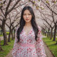 Körsbärs blommar på vitt tyg
