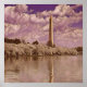 Det här är en abstrakt utformning av Washington Monument omgiven av körsbärs-blommar på en grumlig dag.