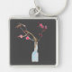 Körsbärsblom sakura akvarell konst fyrkantig silverfärgad nyckelring