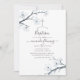Vita körsbärsblommor blommande vattenfärg dop inbjudan med himmelblå vattenfärg baksida designad för att snabbt och enkelt anpassas till ditt evenemang.