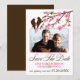 © 2012 Socialite Designs. Fira din kommande vigsel med detta eleganta körsbärsblom (sakura) och kärleksfåglar spara datumet foto kort. Ytterligare text kan läggas till inbjudan på baksidan.