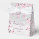 Vackra rosa körsbärsblommor på en silverglittrig bakgrund. Söt botanisk presentförpackning med en tacktext och personliga namn på brud och brudgum samt bröllopsdatum.