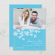 Modern och elegant "save the date" fotokort med asiatiskt tema. Har siluetten av körsbärsblomgrenar för en fräsch och modern look. Lägg till parets bild högst upp för en personlig touch. Perfekt för ett par som vill fira ett bröllop med japanskt, asiatiskt eller blomster tema. Ömt och sofistikerat formspråk, bra för en chic och global brud. Perfekt för ett destination bröllop som ska firas i ett asiatiskt land. Använd det också för ett bröllop som ska hållas i en japansk trädgård. Lägg till din egen text.