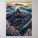 Körsbärsblomstemplet i pointillistisk stil poster
