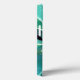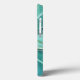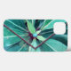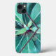 Den ursprungliga konstverken av MaeFlowers på denna iPhone 13-fodral är en design i stil med en clutch-handväska, med flik och knappstängning. Den skapades från ett originalfotografi av blad på ett nyss växande körsbärsträd. Närbildsfotot togs från ovan, som visar virvlet av blad när de växer. Bladen är i varierande nyanser av grönt, från mörkt blågrönt vid basen till ett mer gulgrönt i den nyaste tillväxten. Bladstjälkarna har en rödaktig lila färg. Fotot har tygstrukturer, den akvatrimrade fliken liknar silke och den nedre delen av väskan liknar en grövre tapet. Den runda akvablå knappstängningen är trimmad i en guldfärgad ring, och