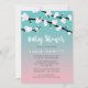 Den gulliga vår-themed baby showerinbjudan som presenterar en koppla ihop av det körsbärsröda träd, förgrena sig fullt av blommor mot rosor och en turkosombrebakgrund.