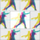 En grafik med primär färgad av en golfenhet med baksida i rörelse.