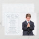 Bjud in alla till din sons minnesvärda och välsignade tillfälle med denna stilrena fotoinbjudan. Det medföljande korset kan tas bort och ersättas med ett monogram eller en initial, vilket gör denna inbjudan mångsidig för alla pojkars firande.