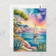 Upplev den goda skönheten i Korsikas kusten med detta vykort för vattenfärg med en fantastisk segelbåt som seglar över lugn turkos vatten. Mjuka penseldrag och milda nyanser fångar öns hårda klippor och fredliga atmosfär i havet, perfekt för älskare av nautiska scener och Medelhavscharm.
