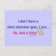 "Jag har ingen kort-uppmärksamhet... Titta på Kattunge!" Lustigt att vara distraherad och glömd med en söt bild av kattunge. Text / teckensnitt i lila och rosa och en blå bakgrund som kan ändras. —
