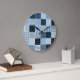 Kort design, geometriskt lapptäcke, blå toner. stor klocka