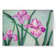 3 som är rosa,/purpurfärgade irises på mjuk grön bakgrund från en original- akrylmålning av Kristy McAdams