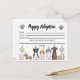 Det här bedårande kortet för valpadoption är det perfekta tillskottet till vilken valptemat födelsedagsfest som helst. Kombinera det med en ny fylld valp till dina gäster och låt dem ta hem ett "officiellt" adoptivkort. Detta kort är helt anpassningsbart och kan ändras för att passa dina specifika behov.