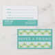 Tandläkareremissvisitkort. Beställnings- remissvisitkort med en remissbefordran som belönar dina kunder för att se deras vänner. Designen har ett geometriskt mönster och en modern färgintrig. Kontakta mig för extra färger. Underbar för att marknadsföra ditt tandläkarekontor och till förhöjning som din beställare listar. Skriv in i din egna befordran, disclaimers och information om företag. Perfekten för orthodontistkontoret, tand- implantatkontor, pediatrisk tandvård eller privat övar.