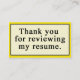 Fullständigt anpassadevisitkortar med din personliga information om kontakt. Varje tid överför du ut en meritförteckning, räcker en meritförteckning till en potentiell arbetsgivare på en jobbmässa, eller meeten med en intervjuare, bör du ha överflöd av behändiga personligvisitkortar. Den är även bättre, om det finns "tackar dig" meddelandet på korten. Vår fullt fodrar av visitkortar inkluderar kort, att något att säga "tackar dig för att granska min meritförteckning", "tackar dig för möte mig", "ser jag framåtriktat till utfrågning från dig" och mer. Var yrkesmässig!
