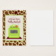 En uppsättning med 100 receptkort (knubbig affärskort) med en illustration av en återinspirerad, ljusstark grönt som ligger sitta på ett burgunskt yta med en orange dej sitta på främre högernas brännare. Bakgrunden är giraffutskrift.