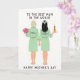 Det här kortet visar två kvinnor sedda bakifrån, stående tätt intill varandra med armarna runt varandra och fingrarna varsamt sammanflätade, en tyst närhet som utstrålar familjekärlek med en romantisk ömhet. De bär matchande mintgröna morgonrockar och står barfota mot en enfärgat vit bakgrund, vilket fokuserar på deras delade omfamning ❤️. Kvinnan till vänster håller i en stor bukett rosa rosor, vars kronblad ger en söt och tillgiven kontrast mot den svala gröna tyget. Kvinnan till höger håller upp en slank ljusstake i en liten varmfärgad hållare, vars lilla låga ger en mjuk, festlig glans. Nära den övre delen syns en kort dedikation i en ledig handritad stil med mörkt bläck, centrerad ovanför figurerna. En andra textrad finns nära nederkanten i en liknande stil och färg, som