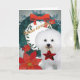 Bichon Frise julkort som presenterar Bichon den hållande röda stjärnan med helgdagkranbackgound