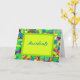 Ett starkt kort för färgad i medelstor grönt och kalkgrönt med en fjärilbakgrund. Olyckor i ord omges av en medelstor grönt gräns och bakgrunden är kalk.