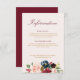 Kort med detaljuppgifter om bröllop med en underbar vattenfärgsblomma och elegant text. Färg kan ändras för att matcha ditt bröllop-tema.