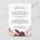 Kortet för boho pampas-gräsmassan är perfekt för sommaren bröllop. Blommigtens vattenfärgsdesign har en bohemisk burgundi och rosa blommor med sprit av neutralt pampas-gräs och guldtorkade handflatan-löv.