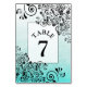 Teal and black elegant script Tribal gräns Bröllop Bordsnummer Card