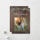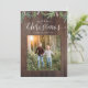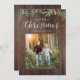 Det här fotojulkortet har trendig handdragen vinter-grön längs toppen med en rustik, brun träbakgrund. Ett modernt skript läser God jul.