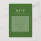 Skicka ett bröllop-kort för grönt med ditt monogram! Detta är ett underbart komplement till våra inbjudningar till grönten. Våra bröllop OSA-kort i träd har ett vackert träd med ett stort träd i mitten, tillsammans med grönt och hjärtaccenter. Anpassa framsidan med dina monogram och bröllop-datum. Baksidan är solid grönt med ljust grönt teckensnitt och innehåller information om OSAN tillsammans med val av måltid. Anpassa fram och tillbaka. Använda mallen för att skapa ditt eget grönt träd bröllop mongram OSA-inneslutningskort.