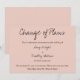 Här är ett enkelt kort för att meddela dina gäster om det blir nödvändigt att ändra ditt bröllop-datum. Använda mallen fält att lägga till dina personuppgifter och göra den här unika, moderna designen till din egen. Alla färg och typsnitt kan ändras efter behov. Var god kontakta alla speciella förfrågningar eller anpassa hjälpen. Det finns även andra delar med alternativ ordalydelse i samlingen.