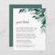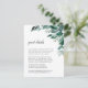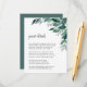 Designat för att matcha vår samling av inbjudningar till bröllopsresor, har dessa botaniska informationskort för elegant en sprej av löv av vattenfärgen eukalyptus och grönt bladverk. Vilka uppgifter ska ingå i en bröllopsinbjudan? Ta hänsyn till information som hotellrum, gruppkoder, transport, anvisningar, välkomstmottagningsinformation och bröllop webbplats-URL. Du kan till och med överföra en karta till motsatt sida med funktionen Anpassa.